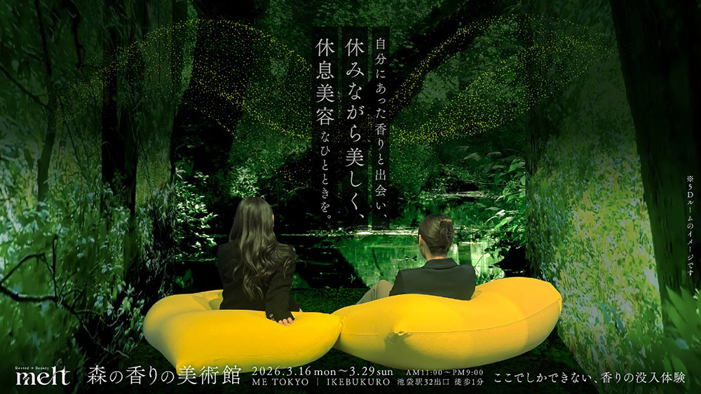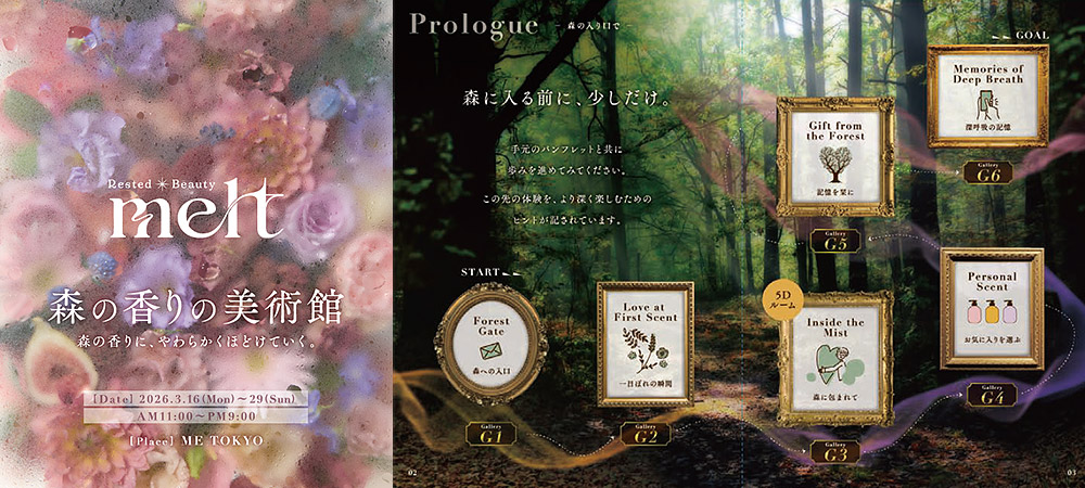 「melt」は、都会の真ん中で森林浴を楽しめる『森の香りの美術館』を、